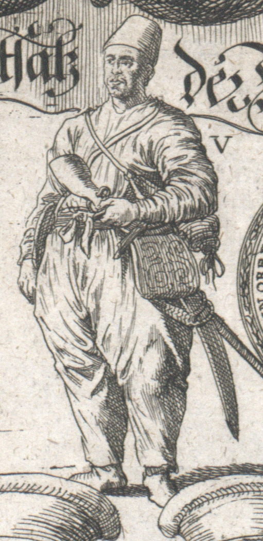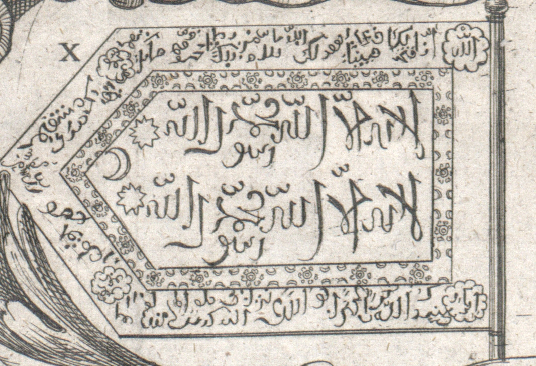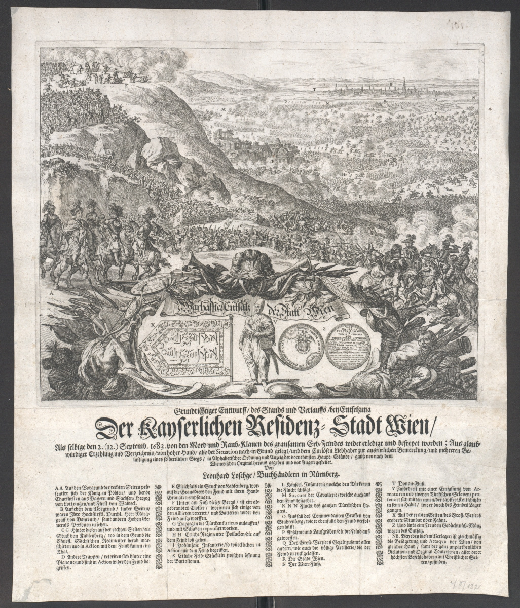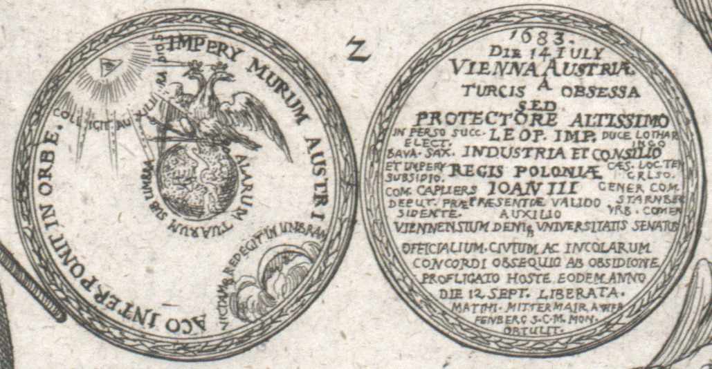 Dolną część przedstawienia zajmuje pokaźny kartusz ułożony z łupów bitewnych i podtrzymywany przez trzech jeńców. Wewnątrz kartusza podpis sceny (Warhaffter Entsatz der Statt Wien) i trzy przedstawienia dobrze znane z innych rycin związanych z bitwą wiedeńską. Po lewej stronie sztandar wielkiego wezyra wzięty w bitwie i wysłany przez Sobieskiego do papieża jako potwierdzenie zwycięstwa wojsk chrześcijańskich. Po prawej – odrys awersu i rewersu medalu wydanego z okazji wyzwolenia miasta. W centrum natomiast wizerunek Jerzego Franciszka Kulczyckiego, który wsławił się tym, że podczas oblężenia wydostał się z Wiednia w przebraniu tureckim, przeszedł niezauważony przez obóz wroga i zaniósł do Karola V Lotaryńskiego poselstwo z prośbą o pomoc. W ten sam sposób, bezpieczny miał wrócić do miasta z odpowiedzią. Na rycinie widzimy go właśnie w orientalnym stroju, tak jak według tradycji ikonograficznej miał wyglądać podczas całej operacji.