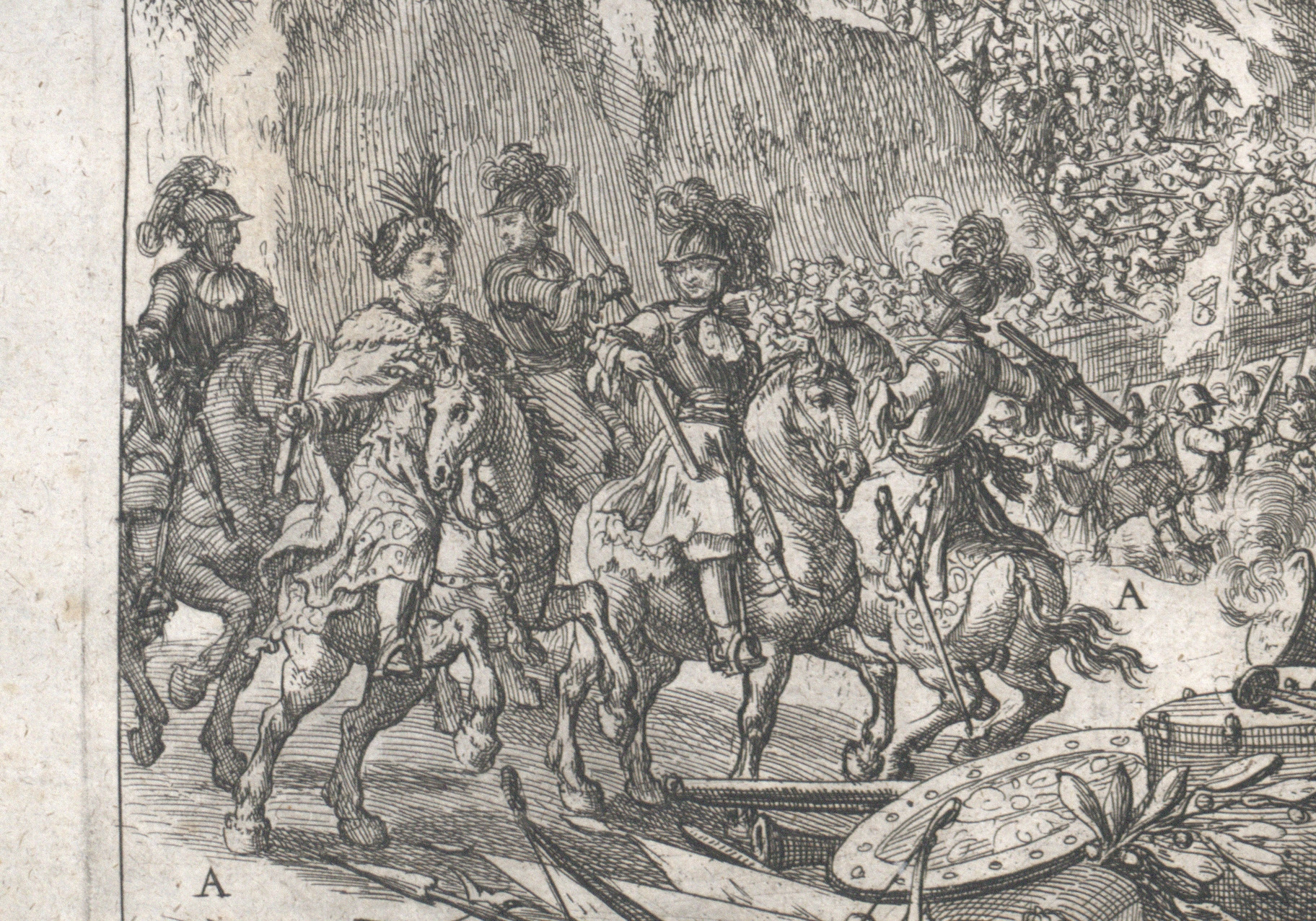 Na dalszych planach ryciny widzimy wojska schodzące ze wzgórz Kahlenbergu i walczące w ruinach klasztoru. Niżej, rozległy teren podwiedeński, na którym toczone są walki, oraz fortyfikacje tureckie. W oddali miasto i szeroko rozlany Dunaj.
