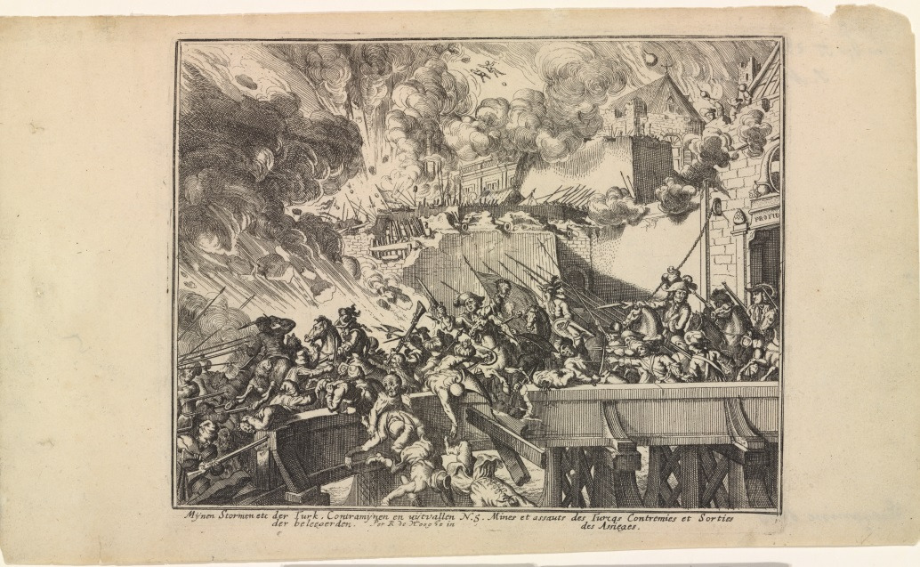 Przedstawienie jest jedną z dziesięciu rycin ukazujących kolejne wypadki z historii oblężenia Wiednia i walk odsieczowych. Zaprojektowane i wykonane po raz pierwszy przez znakomitego rytownika Romeyna de Hooghe’a, zyskały znaczną popularność i doczekały się wielu powtórzeń. Cykl zachowany w Wien Museum jest przykładem tej kariery wzoru – wykonane przez Jacoba Petersa odbitki powtarzają kompozycję de Hooghe’a.
