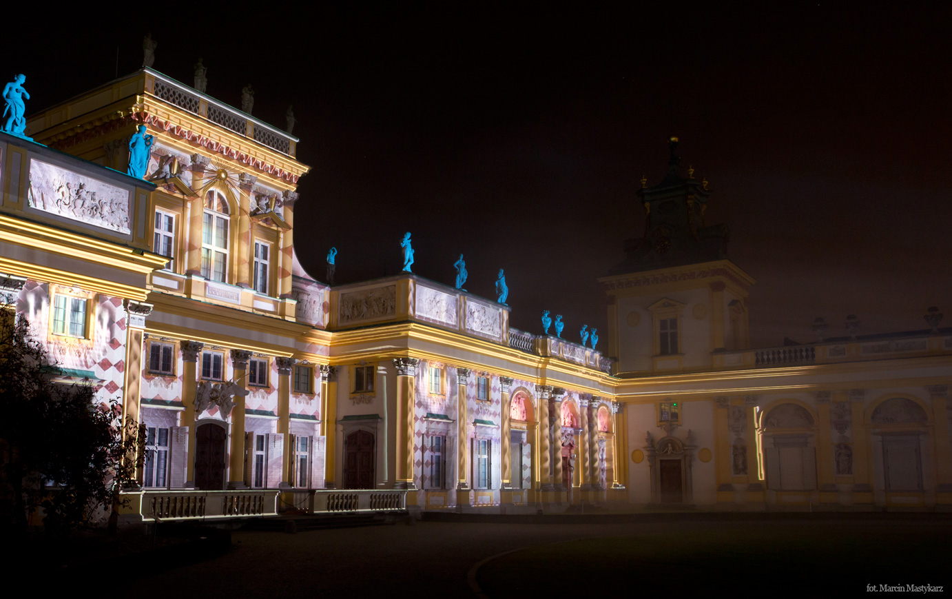 Na dziedzińcu głównym pałacu wilanowskiego zobaczymy kompozycje świetlne nawiązujące do życia Jana III – historii jego miłości do Marii Kazimiery, wojen oraz działań dyplomatycznych. To także znakomite scenerie do zrobienia pamiątkowych zdjęć na tle bajkowo oświetlonej rezydencji królewskiej.