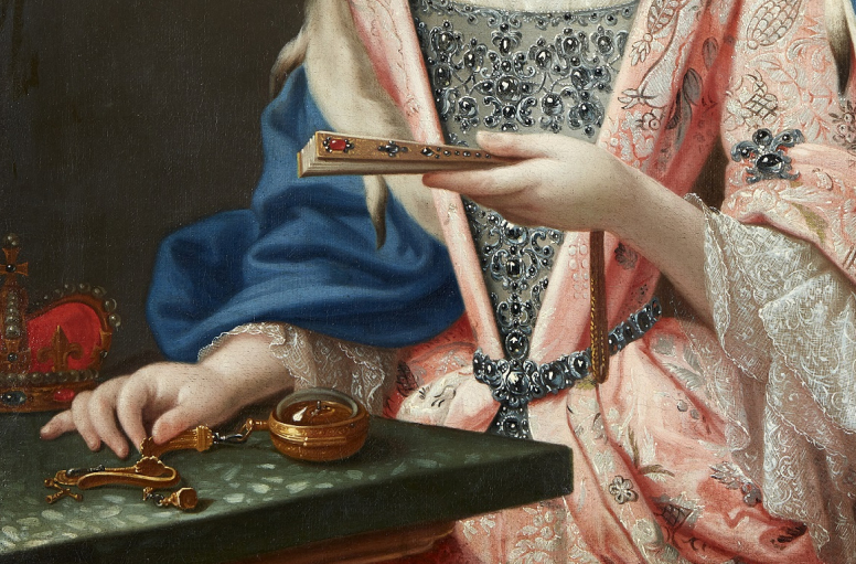 Rekonstrukcja sukni Marii Klementyny, na podstawie portretu autorstwa Williama Mosmana (1733):